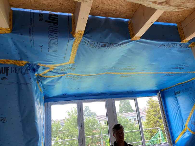 - Sind die Dachsparren des Daches nicht dick genug, um ausreichend Dämmstoff aufzunehmen, doppeln Sie die Sparren mit Kanthölzern raumseitig auf. Auf diese Weise erreichen Sie den optimalen U-Wert (Wärmekoeffizient) mit einer Gesamtdämmdichte von mindestens 16 cm.